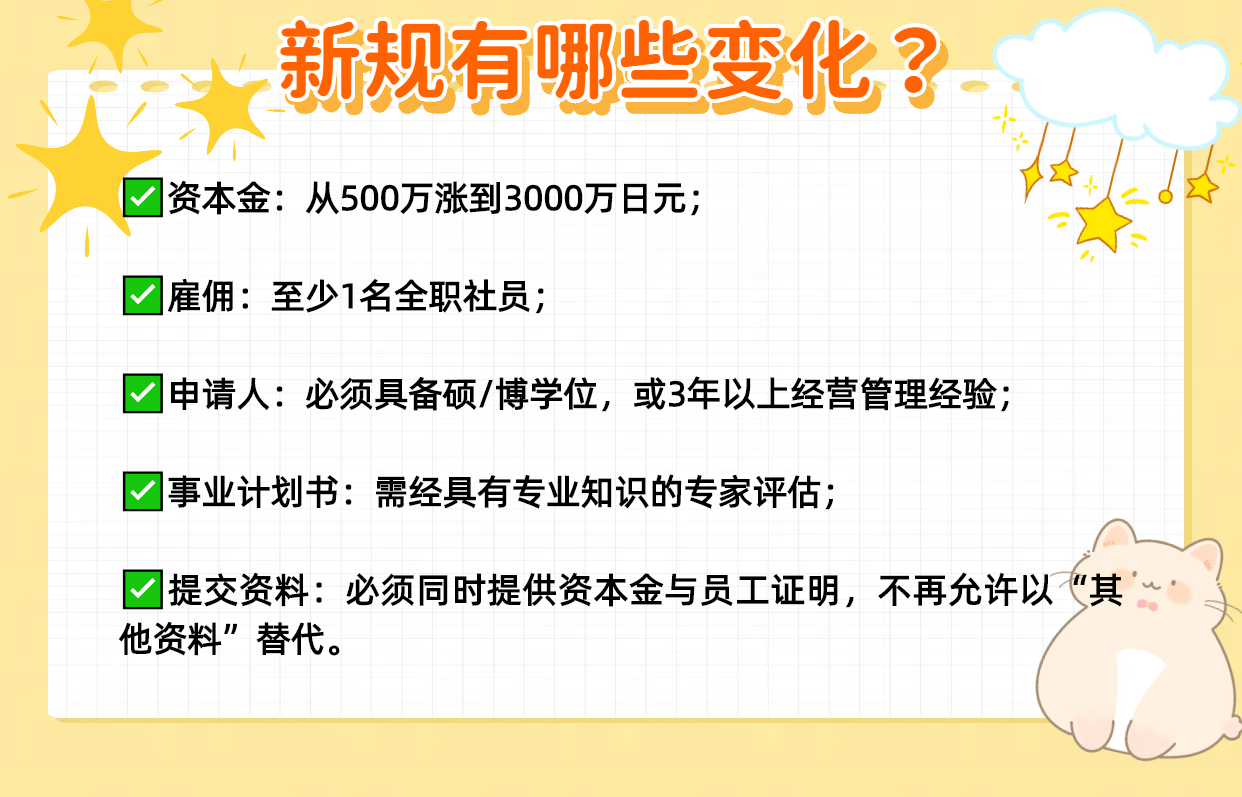 正式敲定:日本普通经营管理·签证,资本金涨到3000万日元,10月施行!