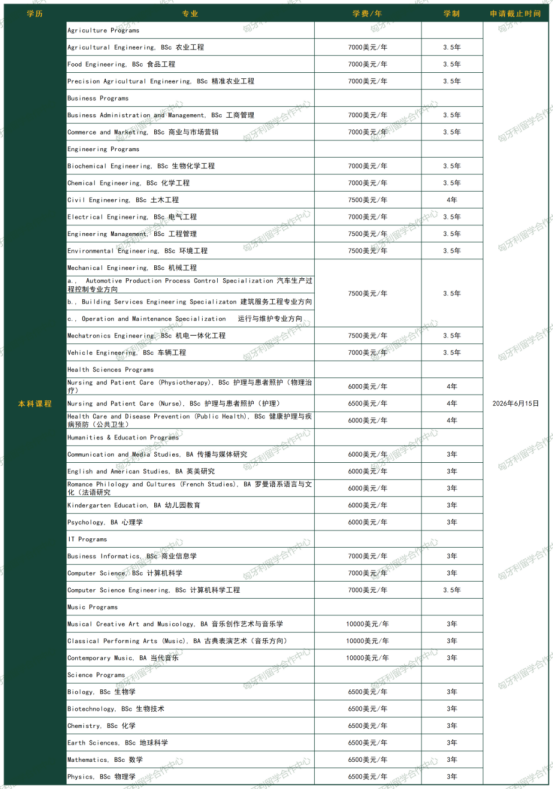 预科/本科/硕士/本硕连读课程:2026年6月15日