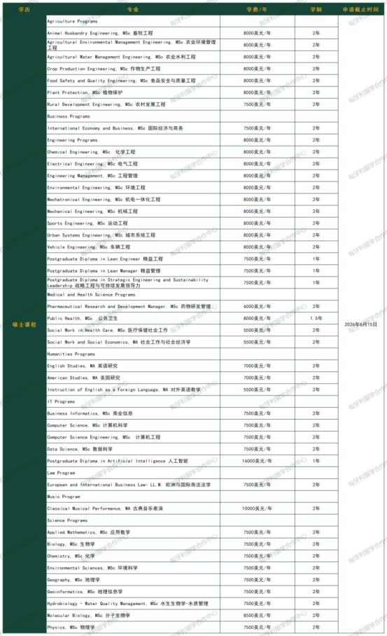 德布勒森大学2026年秋招专业及申请指南英文授课