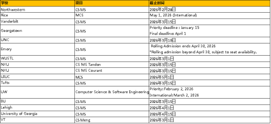 注:以上截止日期信息基于2026年2月底公开数据整理,各项目实际DDL以学校官网为准,建议申请者第一时间登录目标院校官网核实。部分项目为空位制录取,先到先得,请勿拖延。